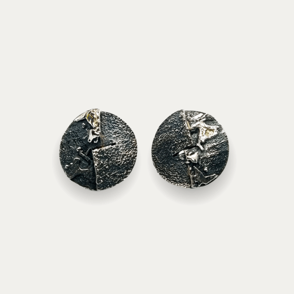 Pendientes, UnoPendientes en plata de ley oxidada y esmeraldas en bruto. Realizados artesanalmente. Cierre de presión.